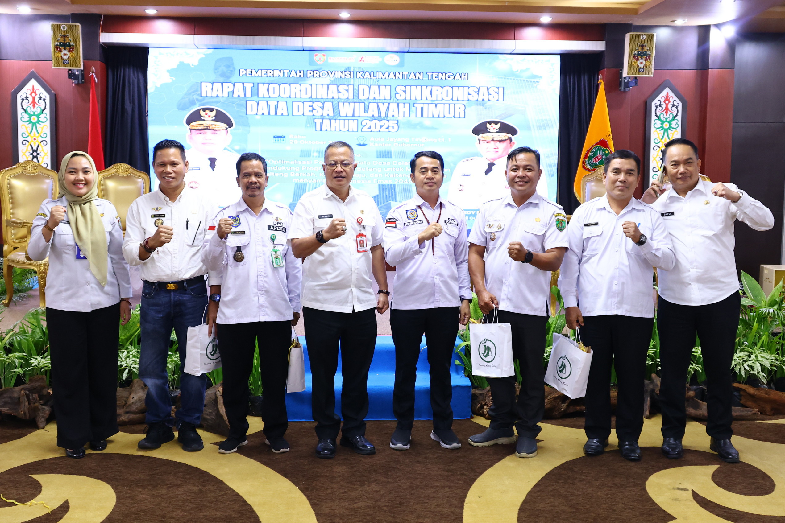 PMDKalteng - Palangka Raya - Dinas Pemberdayaan Masyarakat dan Desa (PMD) Provinsi Kalimantan Tengah menggelar Rapat Koordinasi dan Sinkronisasi Data Desa Wilayah Timur Tahun 2025, bertempat di Aula Jayang Tingang (AJT) Lt. I Kantor Gubernur Kalimantan Tengah (Kalteng), Rabu (29/10/2025).