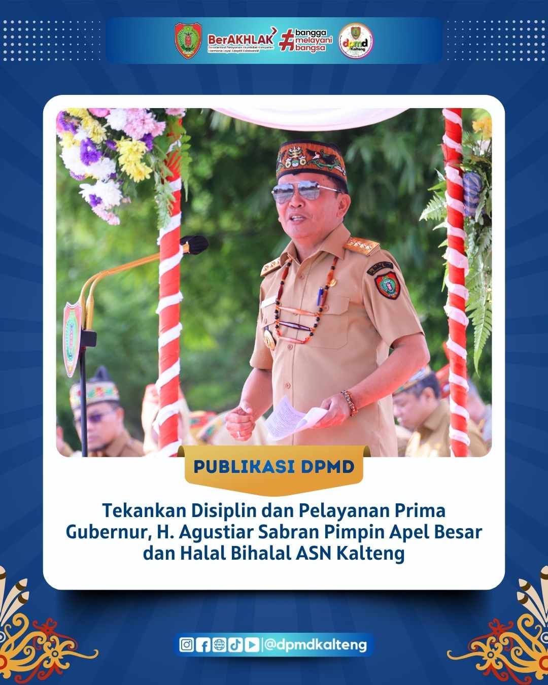 Pemerintah Provinsi Kalimantan Tengah menggelar Apel Besar yang dipimpin langsung oleh Gubernur, H. Agustiar Sabran, dirangkaikan dengan Halal Bihalal pasca libur dan cuti bersama Idulfitri 1447 Hijriah bertempat di halaman Kantor Gubernur Kalteng, Palangka Raya, Selasa (31/3/2026).
