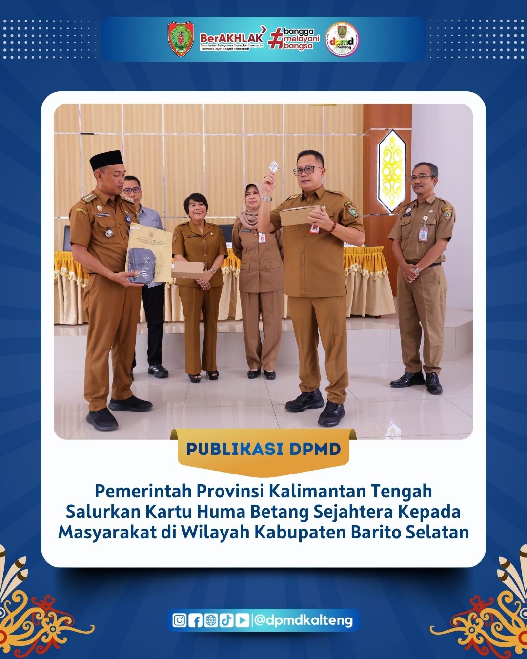 Pemerintah Provinsi Kalimantan Tengah melalaui tim gabungan perangkat daerah yang terdiri dari Dinas Pemberdayaan Masyarakat dan Desa, Badan Kepegawaian Daerah, serta Biro Hukum Sekretariat Daerah menyalurkan Kartu Huma Betang Sejahtera kepada masyarakat di wilayah Kabupaten Barito Selatan.